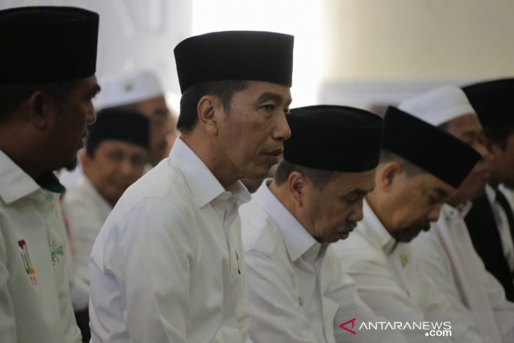 Dengan mengenakan kemeja putih dan kopiah hitam, Presiden Jokowi melaksana shalat Istisqa di Masjid Amrullah yang berlokasi di dalam kompleks Lanud Roesmin Nurjadin pada sekitar pukul 09.00 WIB. Rombongan Presiden yang turut mengikuti shalat tersebut diantaranya Panglima TNI Marsekal Hadi Tjahjanto, Kapolri Jenderal Tito Karnavian, Kepala BNPB Doni Monardo, Gubernur Riau Syamsuar, dan Ketua PWNU Riau.