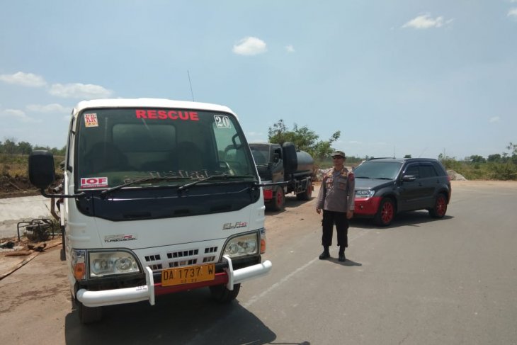 Selain personel Brimob, terlihat juga mobil patroli Direktorat Sabhara dan Direktorat Lalu Lintas Polda Kalsel juga berjibaku melakukan penyiraman, dengan masing-masing membawa air dalam tandon dilengkapi mesin pompa alkon.
