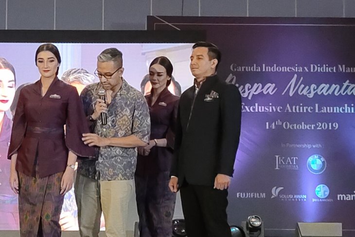Sedangkan untuk pramugara, Didiet menyematkan sedikit tenun pada bagian saku dan leher sehingga memberi kesan elegan.