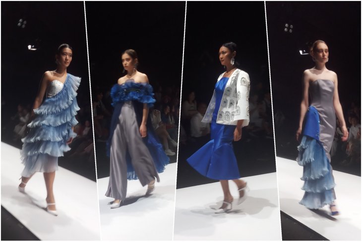 Gelombang laut diimplementasikan Prettycia menjadi pleats yang diolah dari bahan sifon dalam warna gradasi biru.