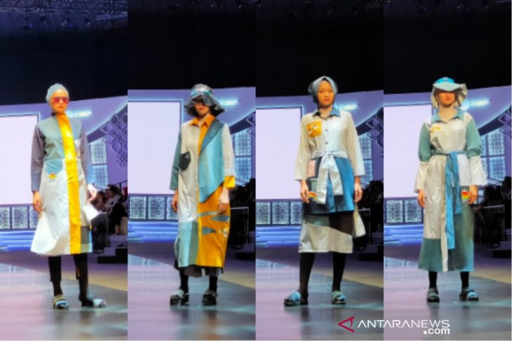 Menariknya, Novita mengaplikasikan berbagai materi kain ke dalam satu busana hingga menjadi corak tersendiri.