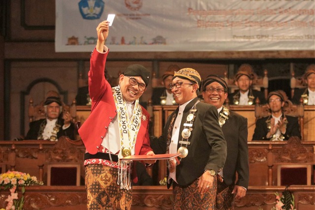 AGRARIA.TODAY – Untuk memberikan penghormatan dan apresiasi atas berbagai pencapaian dan prestasi yang telah ditorehkan Garin Nugroho Riyanto, SH. Institut Seni Indonesia (ISI) Surakarta sebagai Institusi Pendidikan Tinggi Seni Negeri, memberikan Gelar Kehormatan Doctor Honoris Causa dalam bidang Penciptaan Seni Film untuk pertama kalinya. Sidang Senat Terbuka dalam rangka penganugerahan Gelar Doctor Honoris Causa dilaksanakan di Pendopo GPH Joyokusumo dan dilanjutkan dengan Pertunjukan Setan Jawa di Teater Besar Gendhon Humardani ISI Surakarta, Selasa (6/12/2022).