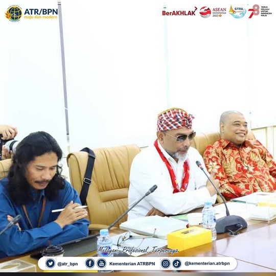 Turut dihadiri Ir. SuyusWindayana, M.App.Sc. Direktur Jenderal Hubungan Hukum Keagrariaan, M. Adli Abdullah Staf Kusus Menteri, Yulia Jaya Nirmawati, Kepala Biro Humas Kementerian ATR/BPN