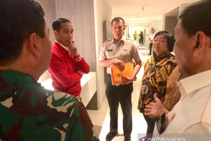 Presiden Jokowi melakukan kunjungan kerja ke Provinsi Riau dalam rangka berkoordinasi mengenai penanganan kebakaran hutan dan lahan (karhutla).Â