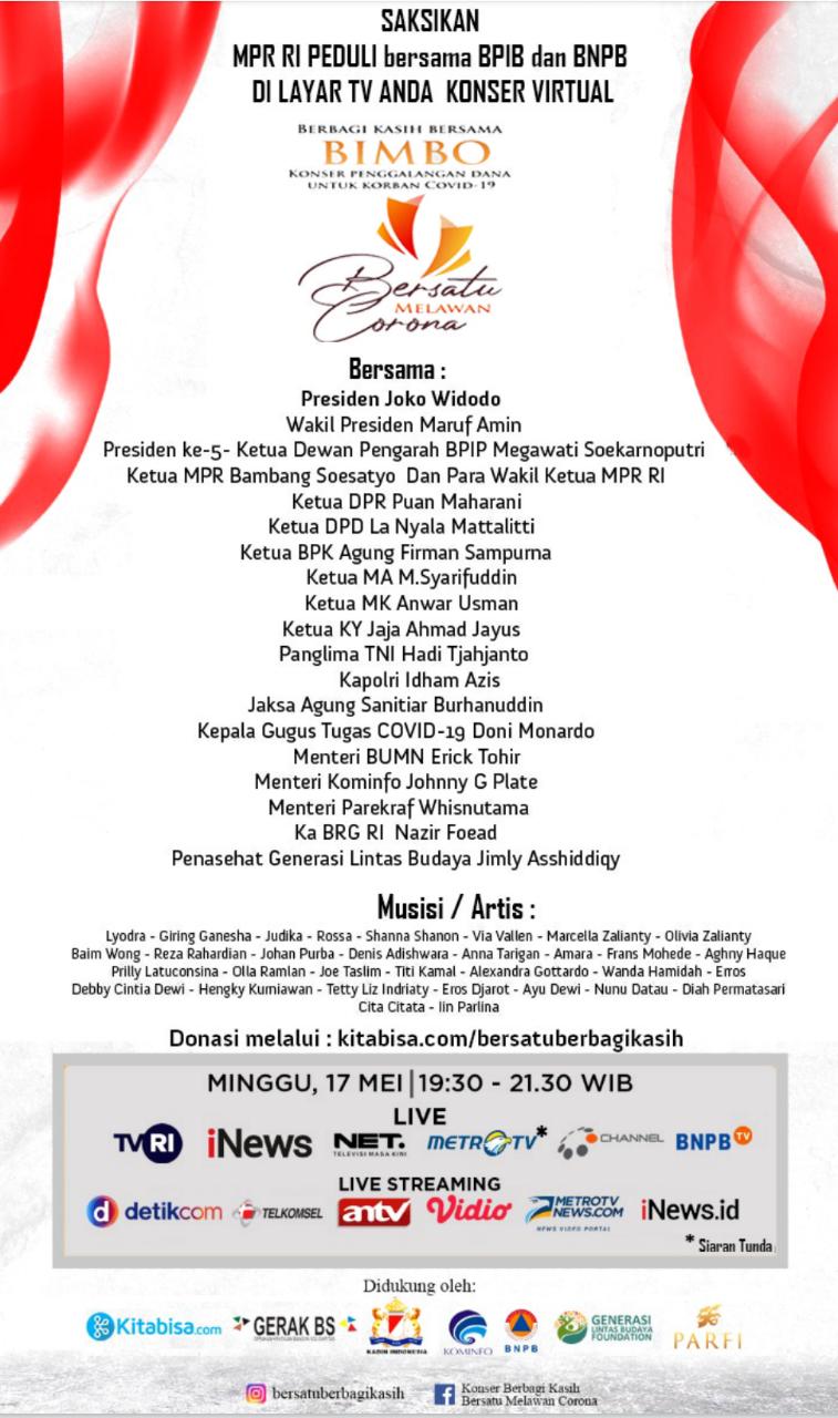 Konser Virtual Berbagi Kasih Bersama BIMBO, Bersatu Melawan Corona pada hari: