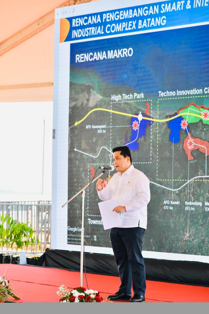 “Kenapa kita buka kawasan industri di Batang ini? Satu saja jawabannya. Kita ingin membuka lapangan kerja yang sebanyak-banyaknya. Cipta lapangan kerja, itu yang kita tuju,” ujar Presiden dalam sambutannya sebelum peninjauan.