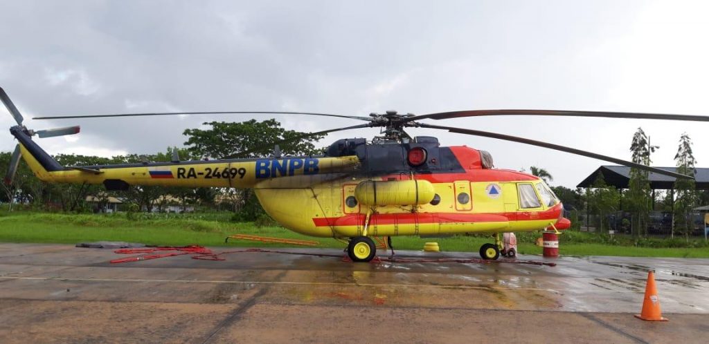 Adapun enam helikopter tersebut meliputi Heli MI-8 dengan daya angkut delapan ton yang direposisi dari Kalimantan Barat dan Heli Kamov 32 A dengan daya angkut lima ton yang direposisi dari Riau.