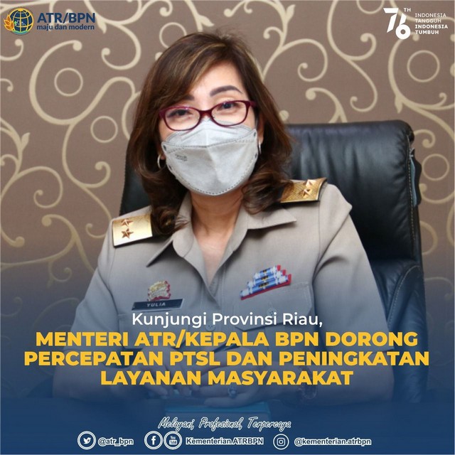 Yulia Jaya Nirmawati mengatakan, penyerahan sertipikat dilakukan dalam rangka mempercepat program Pendaftaran Tanah Sistematis Lengkap (PTSL) di berbagai daerah. Melalui program tersebut, Kementerian ATR/BPN menargetkan sebanyak 126 juta bidang tanah di wilayah Indonesia dapat terdaftar seluruhnya pada tahun 2025. Target PTSL di Provinsi Riau sendiri tercatat sudah terealisasi 100% untuk Peta Bidang Tanah (PBT) dan 41,49% untuk Surat Hak Atas Tanah (SHAT).