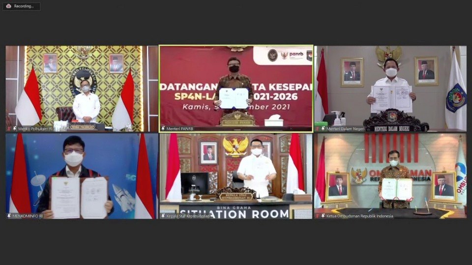 AGRARIA.TODAY – Kementerian Dalam Negeri (Kemendagri) bersama Kementerian Pendayagunaan Aparatur Negara dan Reformasi Birokrasi (KemenPANRB), Kementerian Komunikasi dan Informatika (Kemenkominfo), Kantor Staf Presiden (KSP), bersama Ombudsman RI melakukan penandatanganan Nota Kesepahaman Sinergi Sistem Pengelolaan Pengaduan Pelayanan Publik Nasional (SP4N)-LAPOR! untuk periode 2021-2026. Penandatanganan dan penyampaian komitmen dilakukan Menteri Dalam Negeri (Mendagri) Muhammad Tito Karnavian secara virtual, Kamis (9/9/2021).
