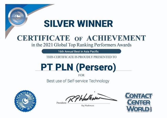 Tahun ini PLN berhasil meraih 3 penghargaan yakni Gold Winner untuk 2 kategori yakni Best Contact Center dan Best Use Social Media in the Contact Center, serta satu Silver Winner untuk kategori Best Use of Self-Service Technology. Seluruhnya didedikasikan untuk Contact Center layanan pelanggan PLN 123 yang kian berkembang di era digital ini.
