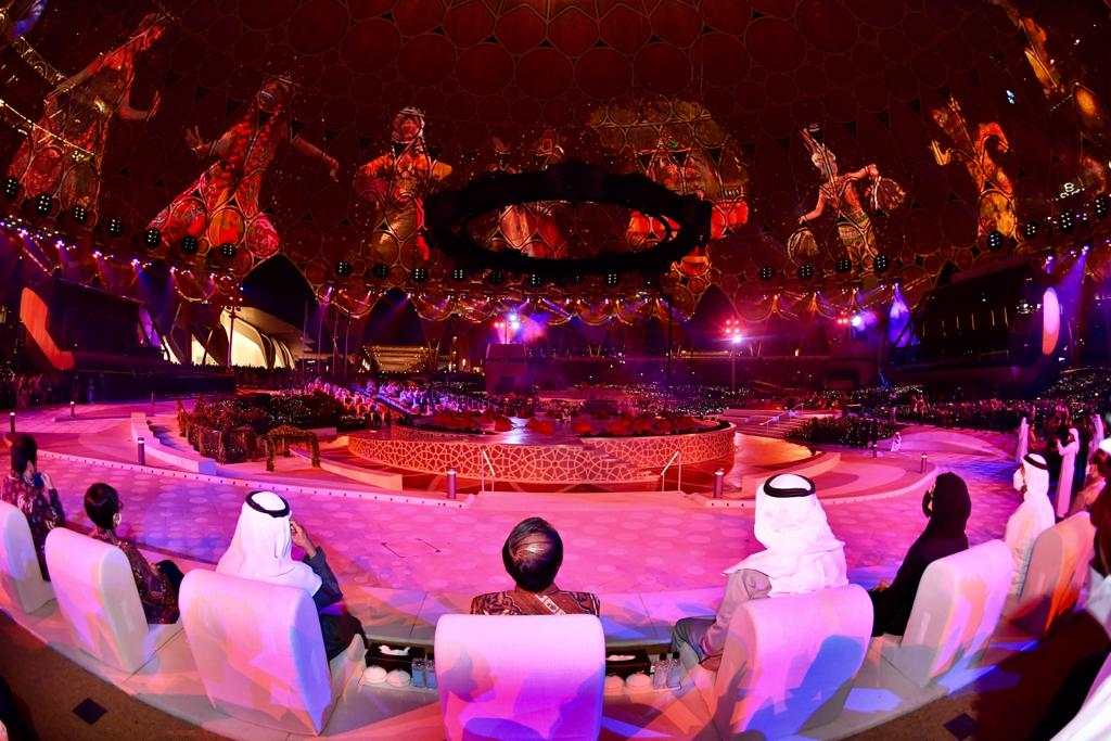 Dari Paviliun Indonesia, Presiden Jokowi kemudian beranjak menuju Paviliun PEA dan disambut oleh Putra Mahkota Abu Dhabi, Sheikh Mohammed Bin Zayed Al Nahyan (MBZ). Keduanya kemudian melihat pertunjukan film yang memperlihatkan perkembangan peradaban Persatuan Emirat Arab. Presiden juga mengisi dan menandatangani buku tamu serta menuliskan pesan “Great vision, great action,” dalam buku tersebut.