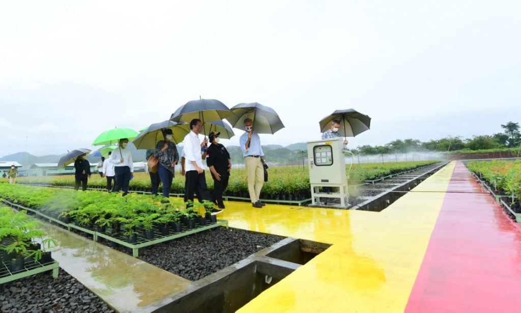 “Kita ingin menunjukkan bahwa Indonesia serius dalam menangani dampak dari perubahan iklim dan kita tunjukkan nursery center ini yang bisa setahun memproduksi kurang lebih 12 juta bibit,” ujar Presiden dalam keterangannya selepas peninjauan.