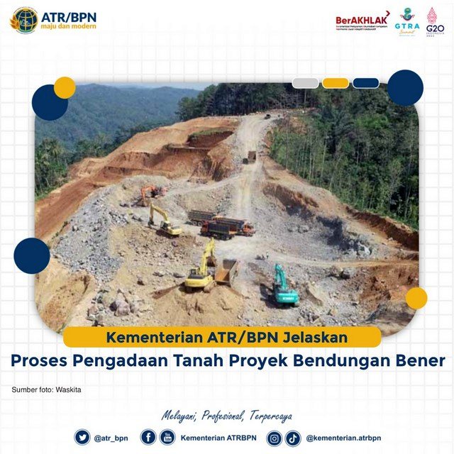 “Bendungan Bener ini adalah salah satu dari 14 bendungan baru di Jawa Tengah (Jateng) yang masuk PSN. Presiden juga telah menerbitkan Perpres Nomor 3 Tahun 2016 tentang Percepatan Pelaksanaan Proyek Strategis Nasional. Kami harap kendala pengadaan tanah ini dapat segera teratasi,” ujar Kepala Biro Hubungan Masyarakat (Humas) Kementerian ATR/BPN, Yulia Jaya Nirmawati di Jakarta, Rabu, (16/02/2022).
