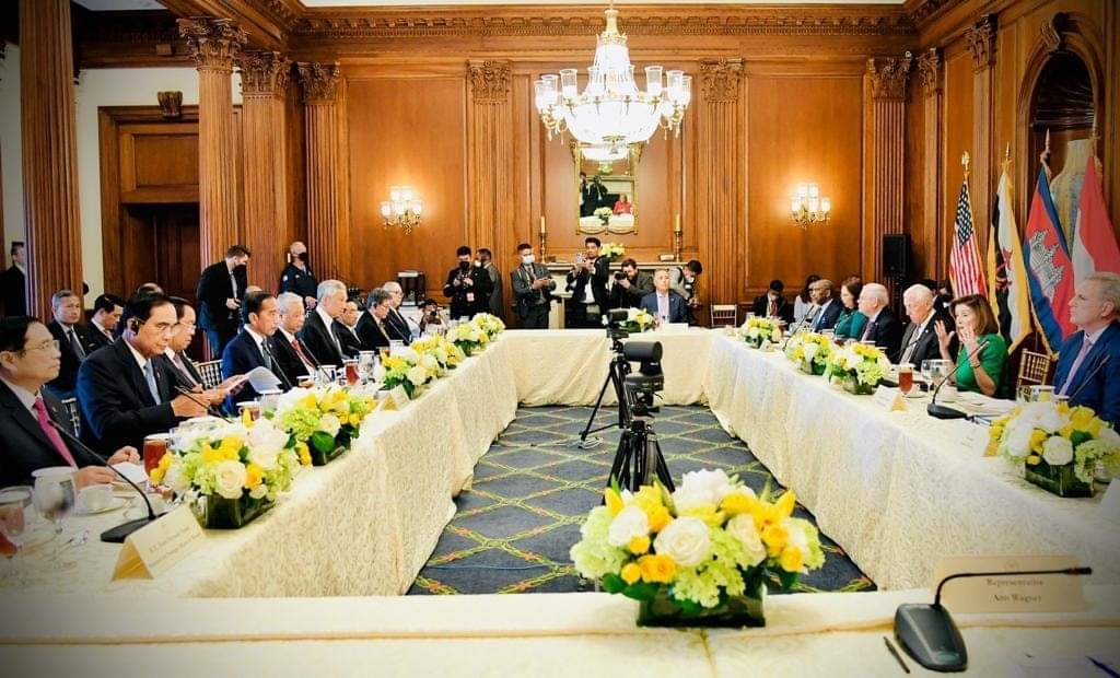 Sembari membalas toast Presiden Biden, saya menyampaikan bahwa KTT Khusus ASEAN-AS merupakan momentum tepat untuk memperkuat kemitraan ASEAN-AS ke depan dan menyambut baik secara prinsip kesepakatan ASEAN-AS untuk memiliki kemitraan strategis komprehensif — sebuah status kemitraan yang paling tinggi.