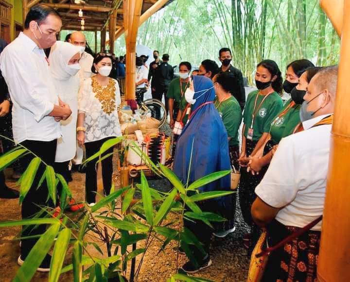 AGRARIA.TODAY – Berkunjung ke Kampus Bambu Turetogo, Kabupaten Ngada, Provinsi Nusa Tenggara Timur (NTT), pada Rabu, 1 Juni 2022, Presiden Joko Widodo dan Ibu Iriana Joko Widodo berkesempatan melihat berbagai produk bambu, seperti sepeda bambu yang dinamai Spedagi, bambu laminasi yang dapat digunakan untuk tiang, dinding, hingga lantai.