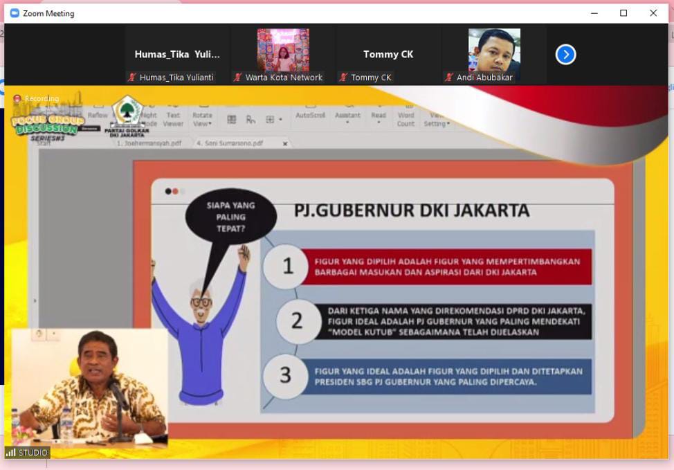 Pakar Otonomi Daerah Djohermansyah Djohan dalam kesempatan yang sama membeberkan kriteria figur ideal untuk sosok Pj yang akan memimpin DKI Jakarta dua tahun kedepan.