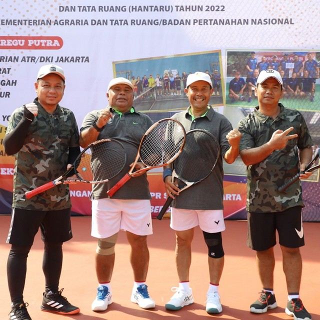 AGRARIA.TODAY – Peringatan Hari Agraria dan Tata Ruang (HANTARU) Tahun 2022 terus dimeriahkan dengan berbagai acara, salah satunya pertandingan tenis di lingkungan Kementerian Agraria dan Tata Ruang/Badan Pertanahan Nasional (ATR/BPN). Pertandingan yang berlangsung di Lapangan Tenis DPR/MPR, Senayan ini dibuka langsung oleh Inspektur Jenderal Kementerian ATR/BPN, Sunraizal, pada Sabtu (05/11/2022).