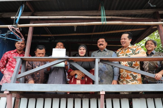AGRARIA.TODAY – Menteri Agraria dan Tata Ruang/Kepala Badan Pertanahan Nasional (ATR/BPN), Hadi Tjahjanto menyerahkan 12 sertipikat tanah secara door to door di Kelurahan Arab Melayu, Kecamatan Pelayangan, Kota Jambi, pada Kamis (22/12/2022). Pembagian secara langsung ini dalam rangka memastikan tidak adanya masalah di lapangan, terutama soal penarikan biaya di luar kewajiban dalam penyelesaian sertipikat.
