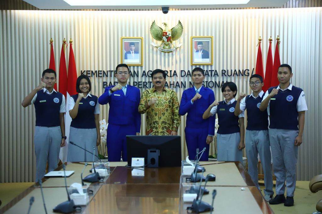 AGRARIA.TODAY – Menteri Agraria dan Tata Ruang/Kepala Badan Pertanahan Nasional (ATR/BPN), Hadi Tjahjanto menerima audiensi dari perwakilan siswa-siswi SMA Pradita Dirgantara di Kantor Kementerian ATR/BPN Jakarta, pada Selasa (18/04/2023). Dalam kesempatan ini, Hadi Tjahjanto memberikan gambaran peran Kementerian ATR/BPN dalam mewujudkan Indonesia Emas 2045 kepada siswa-siswi tersebut.