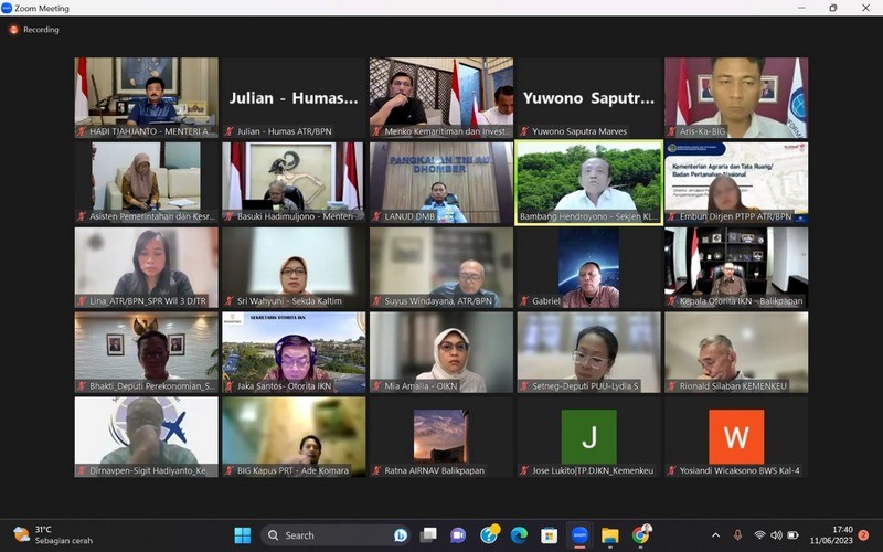 Turut mengikuti rapat daring ini, Menteri Pekerjaan Umum dan Perumahan Rakyat, Basuki Hadimuljono; Kepala Otorita IKN, Bambang Susantono; para Pejabat Pimpinan Tinggi Madya dan Pratama di lingkungan Kementerian ATR/BPN; Sekretaris Jenderal Kementerian Lingkungan Hidup dan Kehutanan (KLHK); Direktur Jenderal Kekayaan Negara Kementerian Keuangan; Pemerintah Daerah Kalimantan Timur; Kepala Lanud Dhomber; beberapa jajaran Kantor Wilayah BPN Kalimantan Timur; serta beberapa jajaran Kantor Pertanahan Balikpapan. (MW/JR)