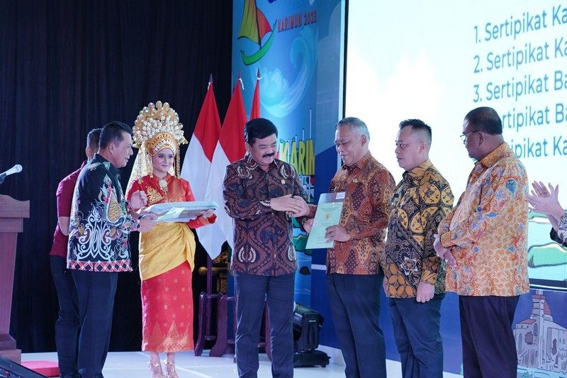 AGRARIA.TODAY – Dalam momen Gugus Tugas Reforma Agraria (GTRA) Summit Karimun 2023 yang berlangsung di Hotel Aston Karimun, Kepulauan Riau, Rabu (30/08/2023), Menteri Agraria dan Tata Ruang/Kepala Badan Pertanahan Nasional (ATR/BPN), Hadi Tjahjanto menyerahkan sebanyak 36 sertipikat. Sertipikat tersebut terdiri dari sertipikat aset kawasan industri, aset pemerintah daerah (Pemda), dan satu di antara aset Pemda itu adalah sertipikat untuk Kawasan Cagar Budaya Pulau Penyengat.