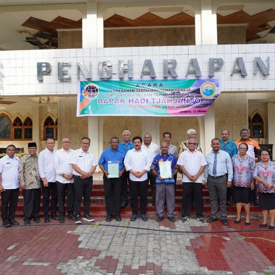 AGRARIA.TODAY – Dalam rangkaian kunjungan kerja ke Provinsi Papua pada Selasa (17/10/2023), Menteri Agraria dan Tata Ruang/Kepala Badan Pertanahan Nasional (ATR/BPN), Hadi Tjahjanto menyerahkan sertipikat untuk rumah ibadah di Kota dan Kabupaten Jayapura. Kegiatan ini merupakan implementasi Gerakan Nasional Sertipikasi Rumah Ibadah dan Pesantren yang telah dicanangkan sejak 2022 lalu.