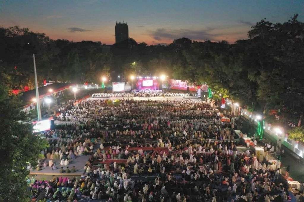 Rangkaian acara diawali dengan sambutan gubernur, sholat magrib berjamaah, taukziah dan doa, sholat Isya berjamaah dan di tutup dengan pembangian santunan kepada 3.540 anak anak yatim piatu.